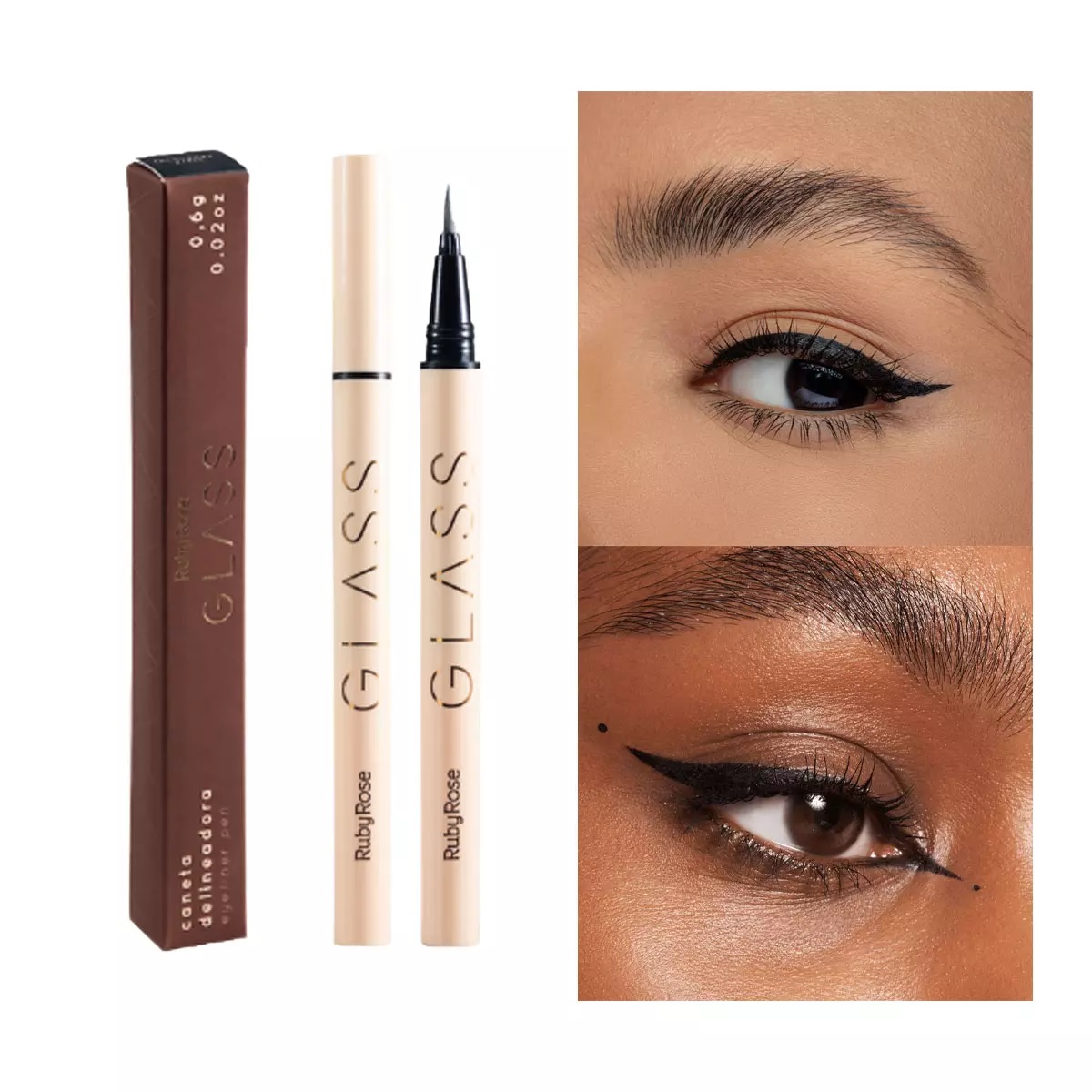 Modo de uso: Agite antes de usar. Faça o traço a partir do canto interno da pálpebra para o externo, rente à raiz dos cílios.